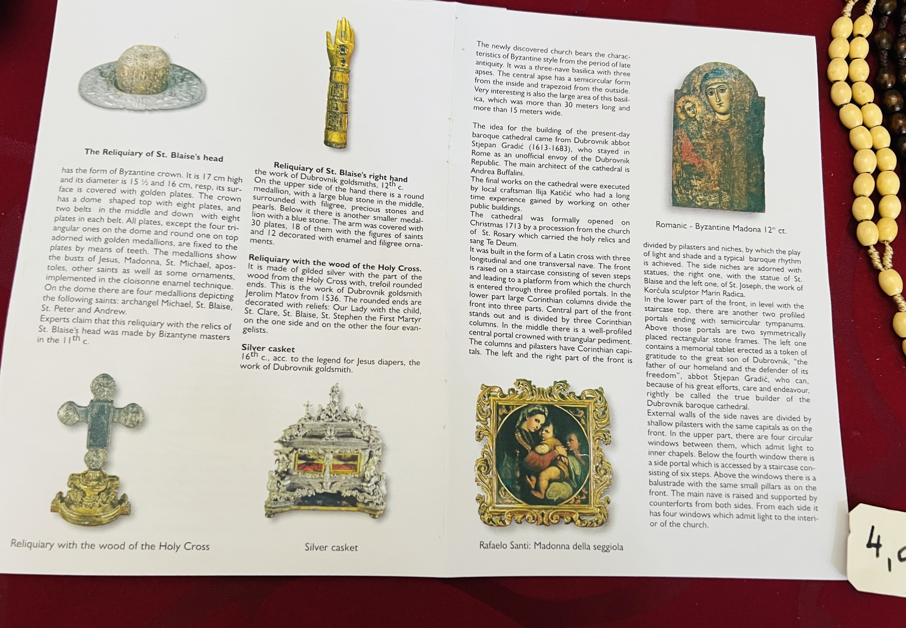 - 성 블라제(도시 수호성인)의 두개·팔·다리 유골과 정교한 금은 성유물함, 아기 예수의 포대(‘swaddling clothes’로 표기), 성 십자가 파편 등 11–18세기 성유물 182점을 소장.
