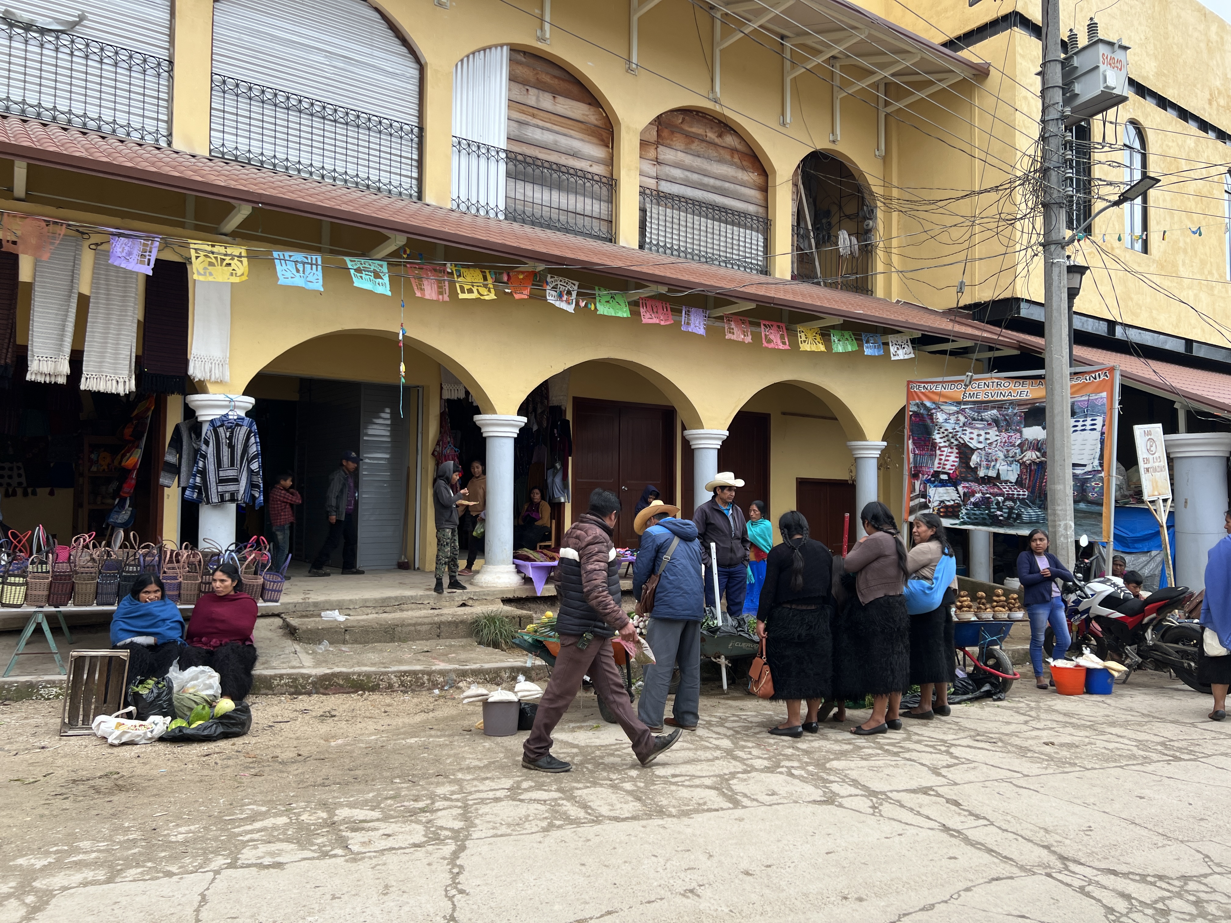 Opposite the church, a small market was in full swing — a place where the village’s atmosphere and the movements of the Maya people seemed to surge towards me all at once.