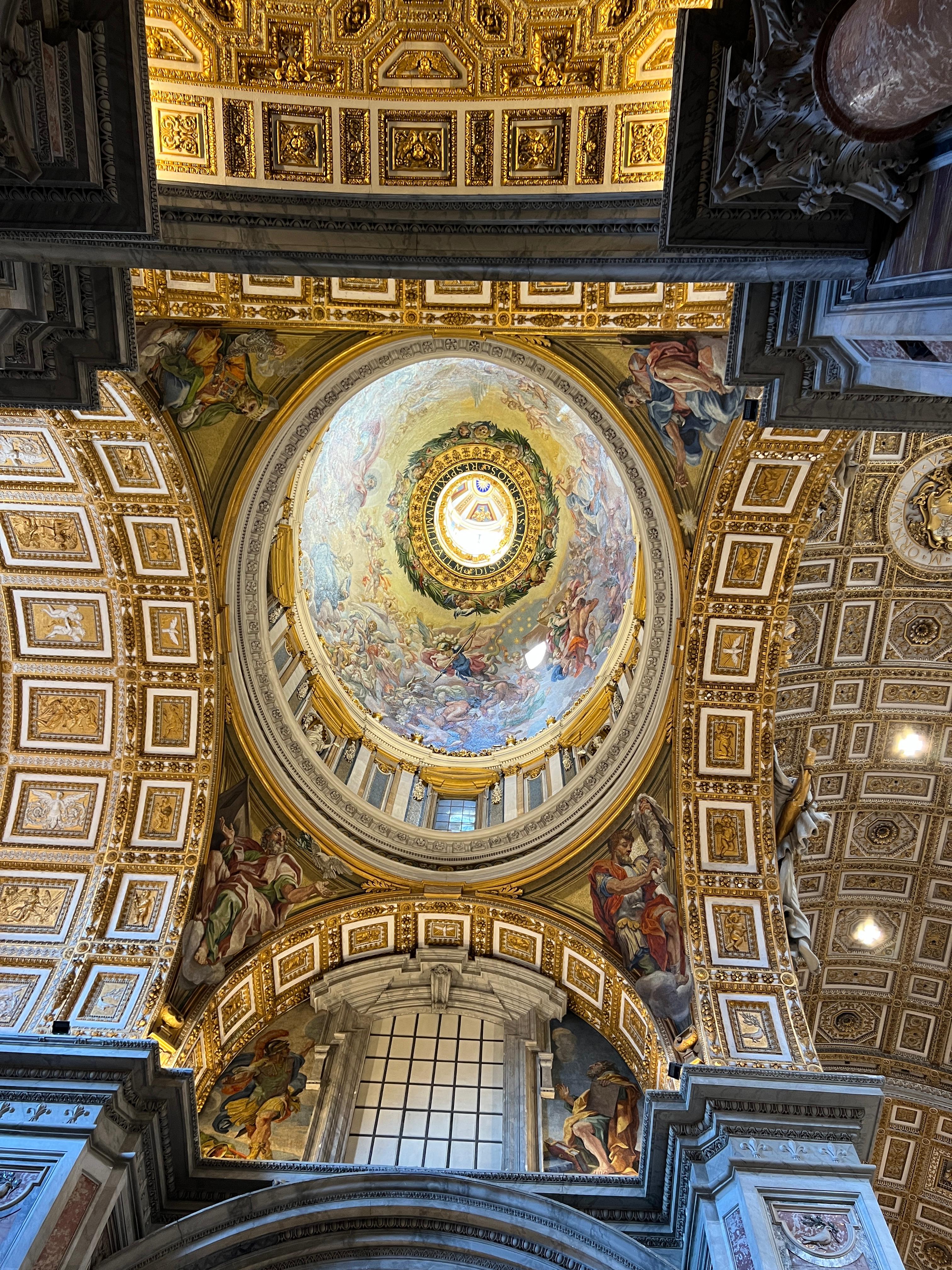 After finishing the guided tour of St Peter’s tomb, I passed through the necropolis and at last entered St Peter’s Basilica. The sight before me was so majestic that it almost took my breath away. Standing before the vast central altar, the glittering golden mosaics, the soaring ceiling, and the overwhelming sense of space, I remained still for quite some time, utterly captivated. It did not feel like a beautiful building alone, but a holy place layered with long memories of faith and prayer.